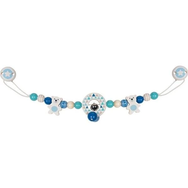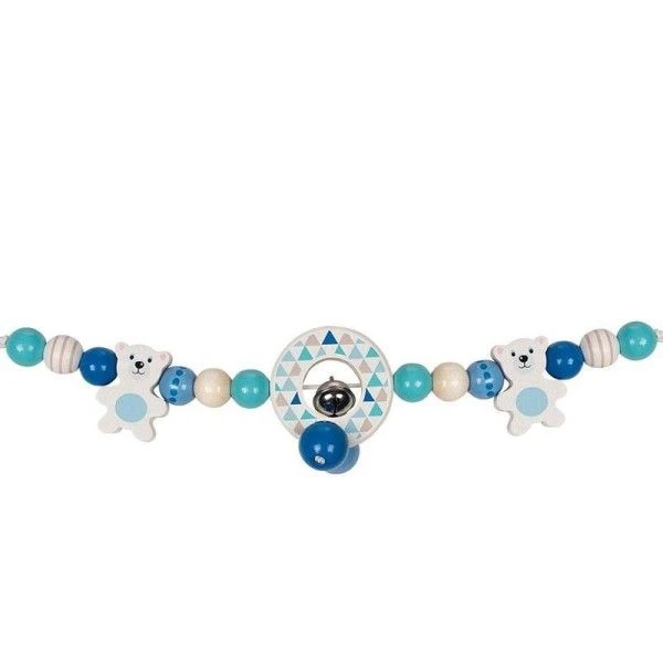 Pour les touts petits voyageurs dés 3 mois, cette magnifique Chaîne de poussette en bois Ourson polaire Heimess® aux jolies formes et couleurs harmonieuses est magnifiquement réalisée. Une succession d’anneau, de grelot, de perles rondes et les petits ours polaire rendent cette chaîne de poussette attrayante et ludique. Le plus belle, simple et naturelle des chaines de poussette. …. Et bien sur les clips magiques, permettent de l’accrocher au berceau ou à la poussette..
