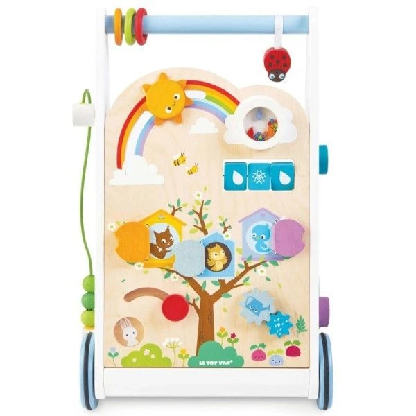 Pour les petits rêveurs, c’est la tête dans les nuages que se fera l’apprentissage de la marche, dés 12 mois, éveil émotionnel et imagination avec ce superbe chariot de marche et des astucieux & enchanteurs ateliers d’éveil en bois d’hévéa peints à la main…. Chariot de marche Multi Activités Nuage & Arc en Ciel Le Toy Van®. Un chariot stable pour faciliter l’apprentissage de la marche, et un tas de petits ateliers pour entraîner bébé à se lever, puis à se promener.