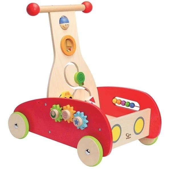 Pour les petits sportifs à partir de 12 mois, éveil physique, éducatif et émotionnel avec ce magnifique Chariot de Marche 2 en 1 en Bois Naturel Hape, Chariot en bois multi activités Hape ‘suprême’ chariot et ensemble d’activités. Stable et robuste, beau et bien équilibré pour encourager bébé à se déplacer partout dans la maison, le petit chariot offre des poses ludiques autour du boulier, des engrenages colorés… et surtout du labyrinthe qui met en scène le parcours entre la maison, le parc et notre petit chariot. Jamais perdu, bébé file au volant de son engin découvrir cuisine, salon et autre cachette. Un joli jouet amusant pour stimuler la marche des petits et encourager leurs progrès et leur permettre de découvrir de nouvelles sensations d’équilibre.