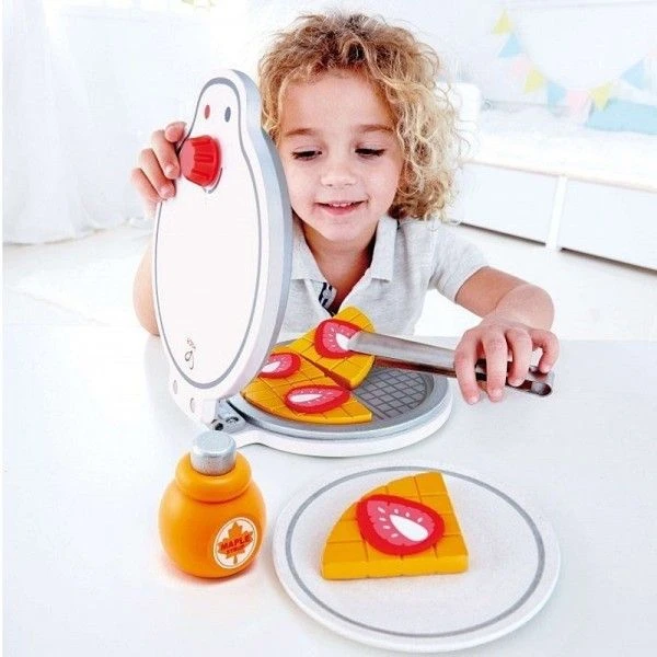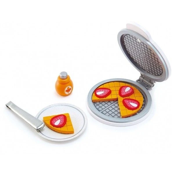 Cet ensemble complète l’Ensemble de Jouets Dinette Hape , il comprend: 1 gaufrier – 1 plat – 4 gaufres – 1 pince – 4 morceaux de fraise – 1 flacon de sirop d’érable.