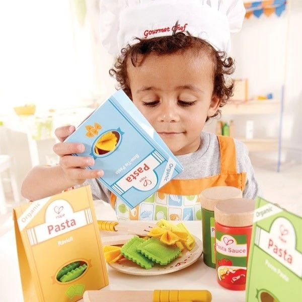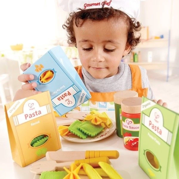 Les jouets d’imitation comme cette dinette Hape Aliments Assortiment de pâtes sont recommandés pour le développement de l’enfant et favorisent les jeux de rôles, la construction de soi et la compréhension de ‘environnement social. En imitant, l’enfant interagit avec son environnement, il construit ainsi ses structures cognitives. En manipulant de nombreux petits objets, comme dans ce jeu de dînette, il développe sa motricité fine. Lorsque l’enfant sert un client ou prépare à manger ou le goûter à sa poupée ou ses parents, il ajuste ses gestes pour parvenir à son but. Enfin, l’imitation joue un rôle majeur dans la socialisation. Le fait de jouer d’autres rôles permet de prendre conscience de l’existence de l’autre mais aussi de soi-même et de jouer en interaction.