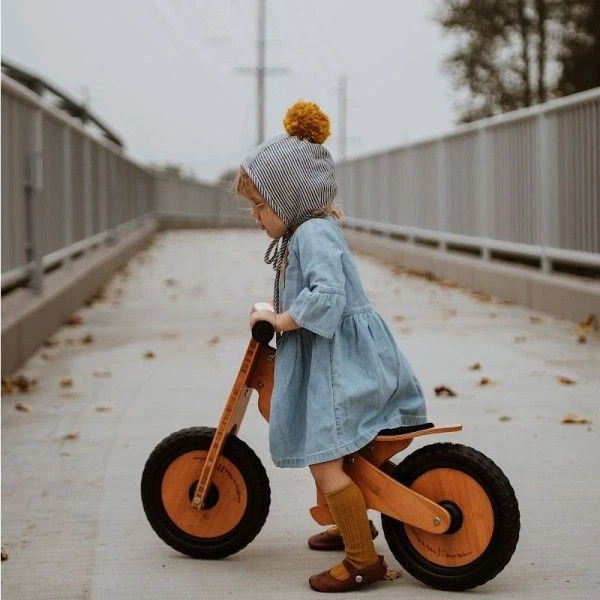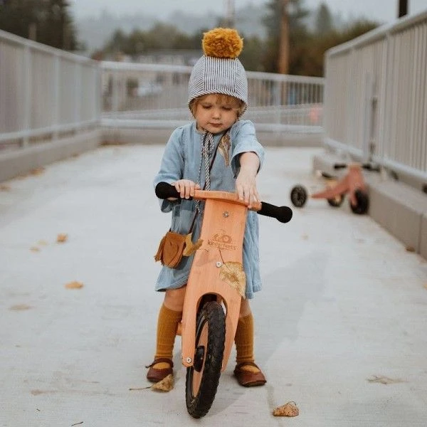 Avec une draisienne en bois Kinderfeets®, les enfants commencent à marcher sur le vélo en avant, puis à se mettre en position assise et à marcher, puis à s’asseoir et à courir, et finalement se déplacer et lever les pieds du sol. Ce processus peut prendre un jour ou deux ou quelques mois selon l’âge et la préparation de l’enfant. Cependant, il s’agit d’un processus amusant et facile,… en même temps, l’enfant développe des compétences d’équilibre et de coordination.