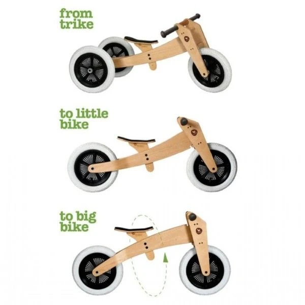 Wishbone Bike Original 3in1 grandit avec les enfants. Du trotteur au tricycle enfant en passant par le vélo équilibré. Si facile à utiliser, les bébés peuvent marcher avec Wishbone Bike, puis se rendre au parc à l’extérieur. Plus tard, convertissez vous en deux roues et regardez votre tout-petit s’amuser en équilibrant. Pas de pédale, pas de stress. Léger, style classique, tout-en-un, bois naturel réglable, entièrement réparable, pour une utilisation en intérieur, en extérieur et hors route.