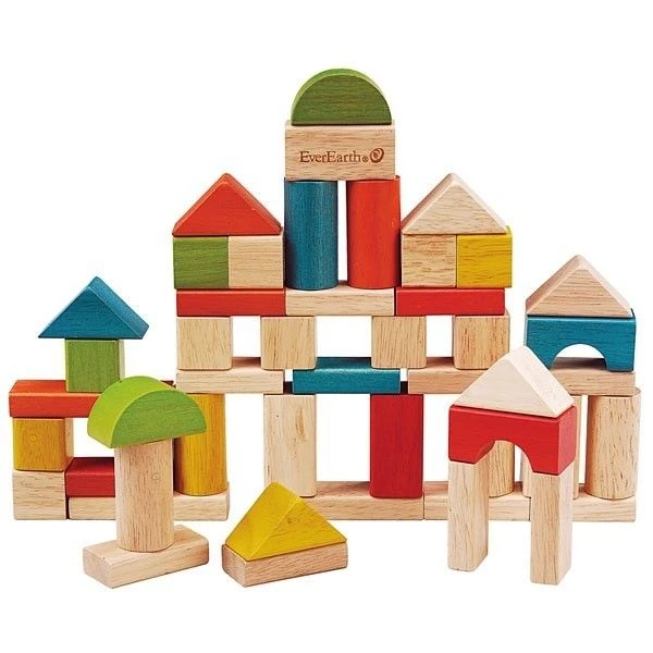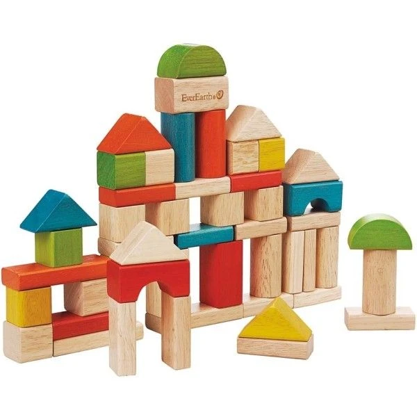 EverEarth® Cubes Blocs De Construction Seau 50 Pièces – Jouets Bois