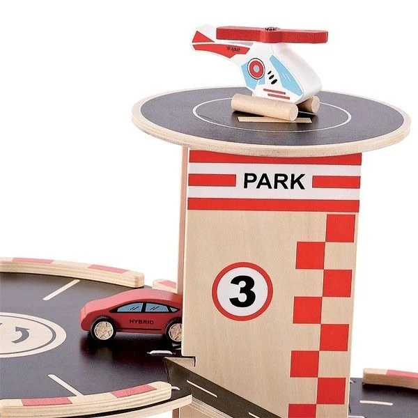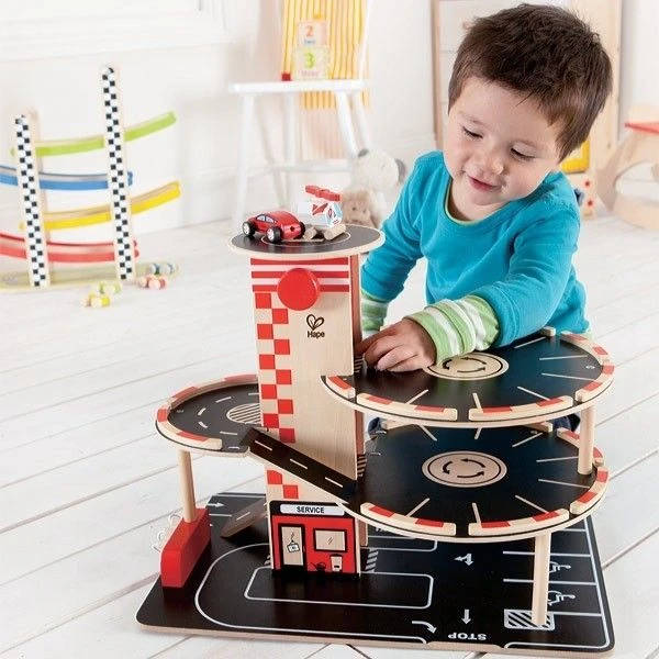 Pour les petits dès 36 mois, éveil physique et émotionnel avec ce superbe Garage & Station Service Hape® pour petites Voitures Hybrides, en Bois Naturel. Un beau garage sur 4 niveaux ou les petites voitures empruntent un ascenseur pour aller se garer. Au sommet une piste d’hélicoptères permet d’assurer la sécurité. Au pied du parking les pompes à énergie rechargent les batteries des petites voitures hybrides, les arrêts de taxi organise la vie de l’ensemble. Un jouet d’imitation pour les amoureux de petites voitures et d’écologie. Simple, robuste et magnifiquement décoré ce garage est livré avec deux petites voitures et un hélicoptère.