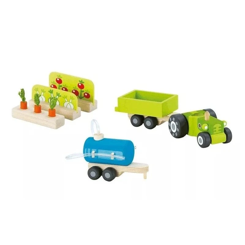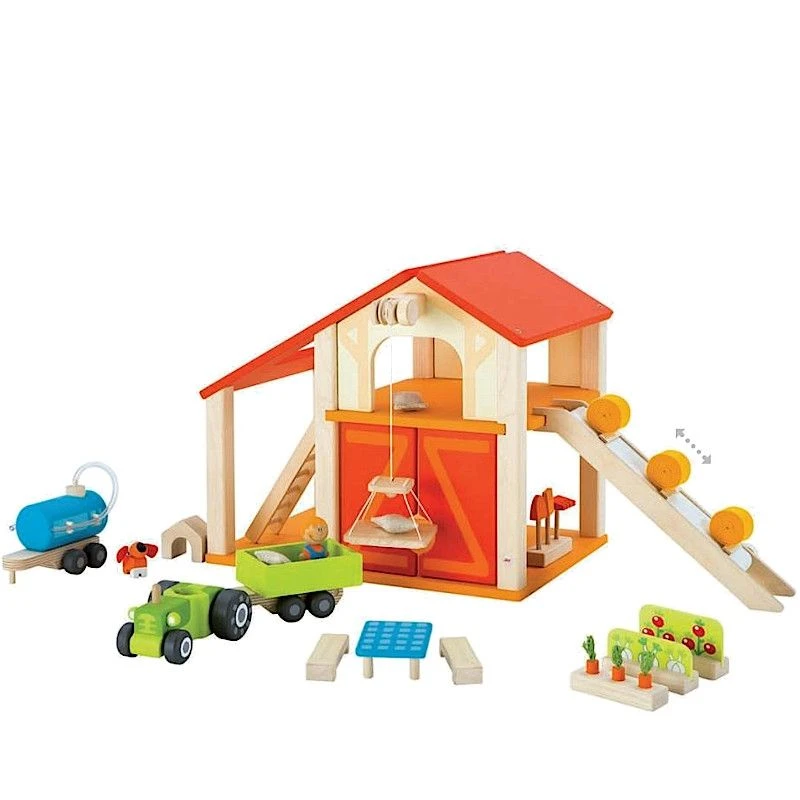 Pour les petits un peu plus grands, découvertes émotionnelles en couleurs avec cette magnifique Grange et ses différents ateliers (la grange, le jardin potager); les outillages agricoles (tracteurs, citernes, grue et monte charge et autres outils de jardinage); …le tout fabriqué avec un exceptionnel soucis du détail et des ambiances . Un ensemble magnifique pour récréer son petit monde agricole sous la grange. Pour jouer à la fermière et au fermier, apprendre et comprendre cet univers agricole, ou tout simplement stimuler son imagination et l’apprentissage des mots. Idéal pour développer l’habilité manuelle et l’organisation.