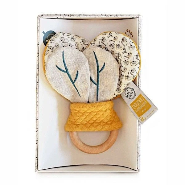 Pour les bébés dès la naissance, éveil émotionnel et câlins éclatants de tendresse et de bonne humeur avec ce magnifique Hochet en bois et papier bruissant Pollen 16cm coton bio Doudou et Compagnie®…Un anneau de bois pour faciliter la préhension mais aussi soulager les gencives douloureuses… Un hochet en bois et les petites ailes de l’abeille Pollen en papier bruissant pour éveiller bébé et lui dégourdir ses petits doigts….
