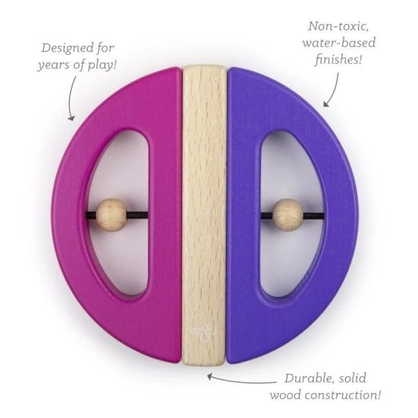 ✎ Les Hochets en bois magnétique Tegu® Papillon Violet & Rose se composent et sont: