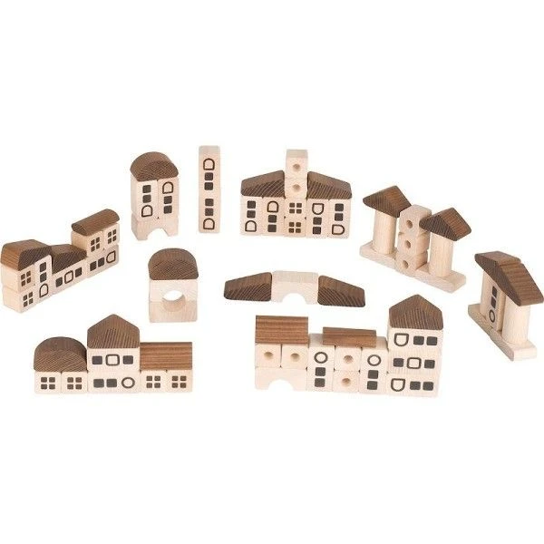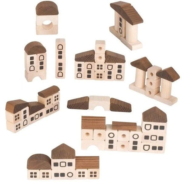 Ce jeu de construction de la ville en bois naturel offre aux jeunes architectes tous les éléments dont ils ont besoin pour mettre en œuvre leurs projets. Les 70 blocs en bois massif doivent leurs différentes nuances de couleurs à un traitement thermique spécial. Ici aucune peinture n’a été utilisée. Un jouet créatif, éducatif et écologique. Les jeux de construction sont très appréciés par les enfants car ils permettent de créer des compositions variées mais également de jouer tout simplement à construire, empiler, trier.