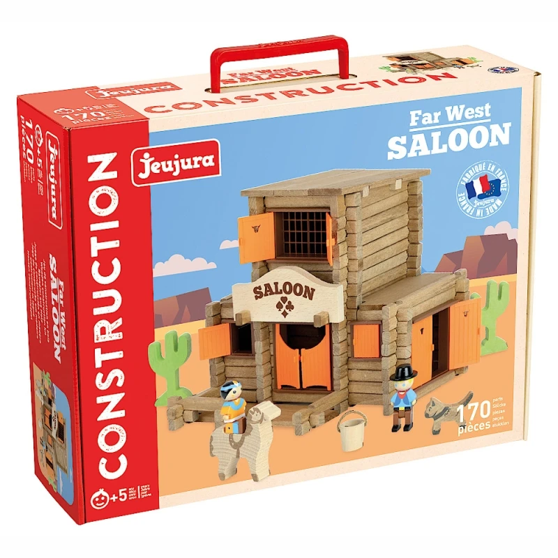 ✎ Les Jouet en bois Jeu de Construction en bois Far West Le Saloon 170 pièces Jeujura® | Ref: 8067 détails