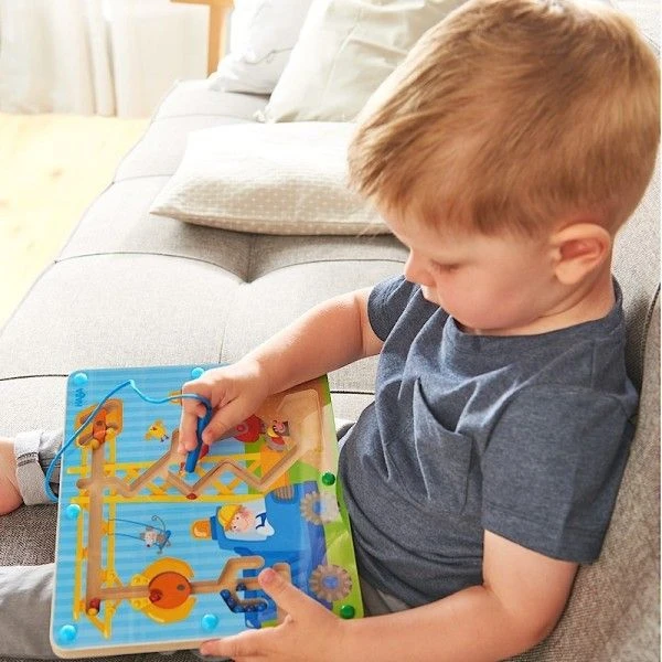 ✎ Les Jeux en bois Labyrinthe magnétique Sur le chantier HABA® se composent et sont: