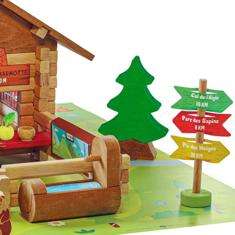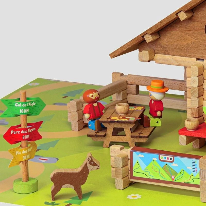 ✎ Les Jeux de construction en bois Le refuge de la marmotte 150 pièces Jeujura® | Ref: 8090 détails