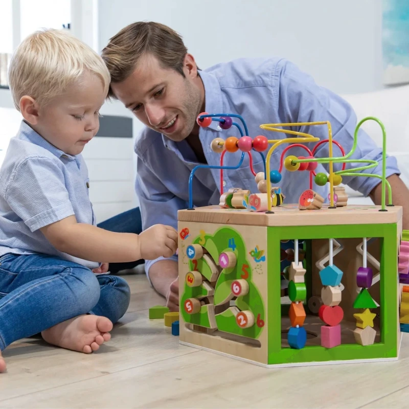 Retrouvez tous les jouets d’éveil multi activités comme les ensembles cubes ou table regroupant les jeux de zig zag, looping, boite à formes, bouliers, puzzles , adaptés aux enfants de 1 ans à 3 ans et plus  Cubes d’activités en bois bébé