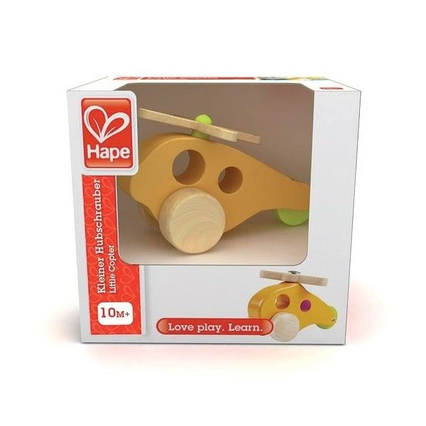 Pour les petits amoureux d’exercice et d’aventures à partir de 10 mois, éveil émotionnel, sensoriel avec ce joli jouet Jouet d’éveil Hélicoptère en bois Hape®. Ce jouet en bois permet à bébé de découvrir le mouvement en poussant commençant par goûter et lécher son hochet hélicoptère avant de s’exprimer différemment sur la parquet. En admirant les lignes épurées de son Hélico orangé, bébé aventurier aura déjà bien fait travailler ses petites mains malhabiles. Ce hochet et jouet à pousser en forme d’hélicoptère est un hochet d’activité idéal qu’il pourra faire rouler dans toute la maison et développer l’air de rien sa motricité, sa préhension… Ses lignes épurées en font un jouet intemporel solide et durable pour jouer de longs moments…