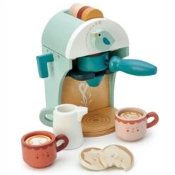 Pour les petits dès 24 mois, ce Jouet Dînette en bois Machine à café Babyccino Tender Leaf Toys® est magnifiquement réalisée en bois d’hévéa. Une machine à expresso pour se préparer de bon cafés cappuccino s’il vous plait,… tranquille sous les arbres, cachés au fond du jardin. Une machine à café dînette aux couleurs pastels avec avec de jolies tasses, ,ainsi qu’un pot à lait, des dosettes de couleurs pour tous les goûts et un sélecteur idéal comme sur une vraie. deux petits biscuits…mais quel gourmand en a croqué un?