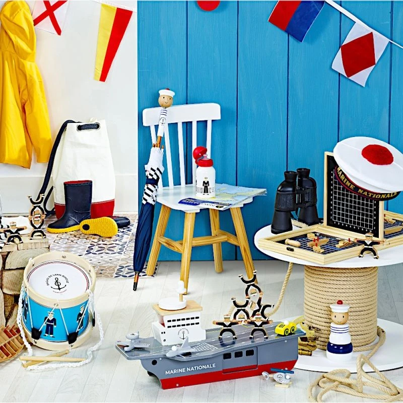 Pour les amoureux de la Marine nationale dés 36 mois éveil physique et émotionnel avec cet ensemble porte avions et ses aéronefs … Jouet en bois Bateau Porte Avions Marine nationale Vilac®. Un magnifique porte avions et ses aéronefs pour s’inventer des tas d’histoires…
