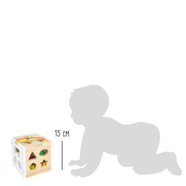 Pour les petits à partir de 12 mois, …éveil physique et émotionnel avec cet amusant Jouet en Bois Cube boite à formes Arc-en-ciel Small foot by Legler®. Une jouet en bois pour exercer la dextérité et la logique des petits… en reconnaissant la relation entre les formes et leurs emplacements sur les cotés du cube, bébé découvre la logique, les formes et la cause à effet et les couleurs … Une jolie boîte en bois aux couleurs vives, et joliment décorée des mêmes formes …