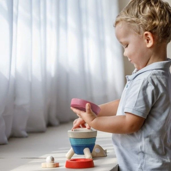 ✎ Les Jouets en bois Fusée à empiler Orchard Plantoys® détails