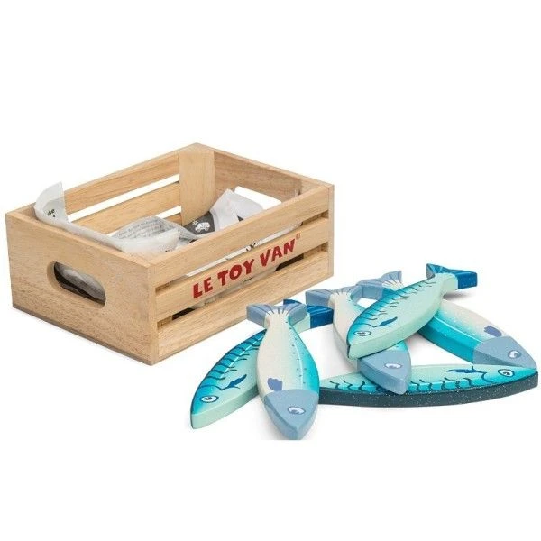Pour les amoureux du commerce, de dinette et des produits bio dés 36 mois, éveil émotionnel et imagination avec cette caisse de poissons en bois Jouet en bois Marchande Caisse du Poissonnier Le Toy Van® . Des poissons frais et joliment peints pour agrémenter un étalage du marché ou de l’épicier et s’amuser à la dinette … Choisir ses aliments c’est une priorité, alors voir et goûter, reconnaître chaque espèce de poisson, c’est la base, pour bien faire son marché. Un jouet qui devrait permettre à nos petits commerçants en herbe de s’organiser une jolie étale rafraîchissante et iodée. Les Jouet en bois Produits du Marché Le Toy Van®s ont peint aux couleurs de couleurs vives et réalistes. Ici les poissons de la mer dans leur caisse de présentation (3 saumons, 3 sardines) accompagneront idéalement les autres articles ‘jouet de marchande’. Le commerce c’est l’avenir disait papy, c’est peut être encore temps de s’y mettre entre internet et les hypers,… il y a de la place pour les petits spécialistes.