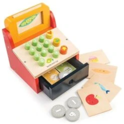 Pour les petits marchands dés 36 mois, imagination et émotion avec cette jolie caisse enregistreuse en bois de la Marchande, Jouet en bois Marchande Caisse enregistreuse Tender Leaf Toys®. Un grand classique des jouets en bois d’imitation qui permet aux petits de faire comme les grands, comme le marchand et s’inventer des histoires pour s’approprier le quotidien et s’amuser tendrement. Avec ce jouet caisse enregistreuse de la marchande nos petits épiciers vont pouvoir bien s’amuser et surtout compter, bipper les articles, appuyer sur les touches quand le code ne passe pas, faire passer la carte bleue ou encore mieux, ouvrir le tiroir caisse,… et encaisser leur argent!! Que de moments de bonheur et d’imagination avec ce jouet Tender leaf toys®.