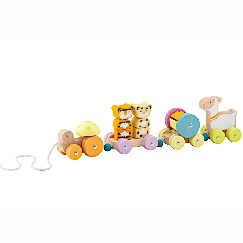 Pour les petits promeneurs en herbe dès 36 mois, éveil physique et émotionnel avec ce Jouet en bois Train des animaux à tirer Sevi 1831®. Un joli train avec un escargot en guise de locomotive suivie de 3 petits wagons avec des ours, tigres et lama et un petit boulier. Les paqssagers des wagons sont composés de plusieurs pièces à enficher sur la tige du wagon, de quoi dégourdir les petits doigts en développant la motricité fine. Les petits bambins se regalent à tirer le train dan stiute la maison et se raconter de belles histoires…