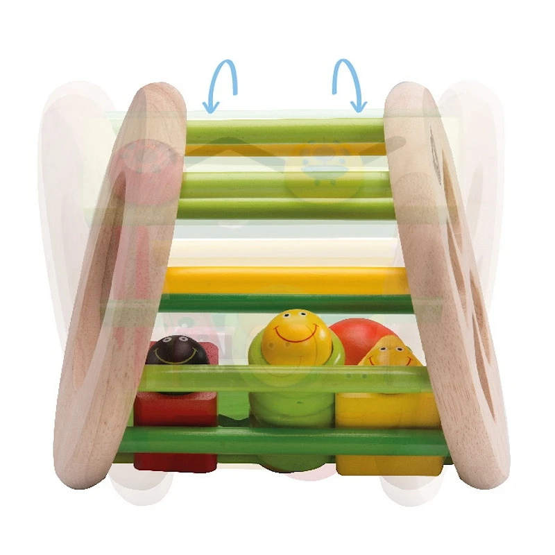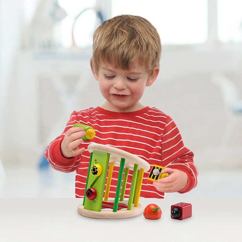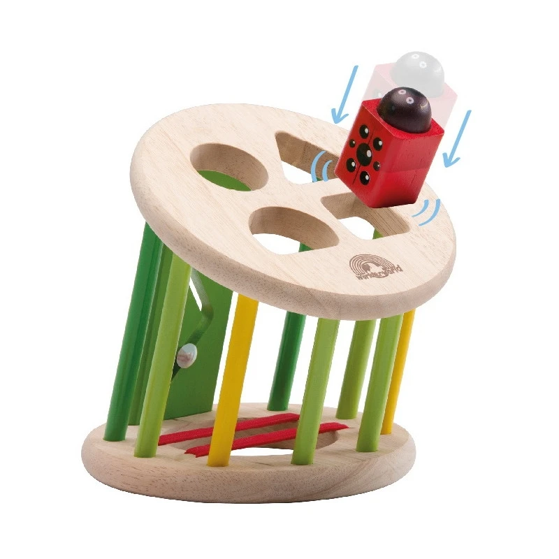 Le trieur de formes multifonctionnel réunit l’éducation et la nature grâce à ces sympathiques amis du jardin. Non seulement ce joli trieur de formes est légèrement incliné pour faciliter le mouvement de tri réel de l’enfant, mais il peut également rouler pour créer un bruit de cliquetis. Déplacer la coccinelle le long de son chemin favorise le développement de la prise en pince de l’enfant.