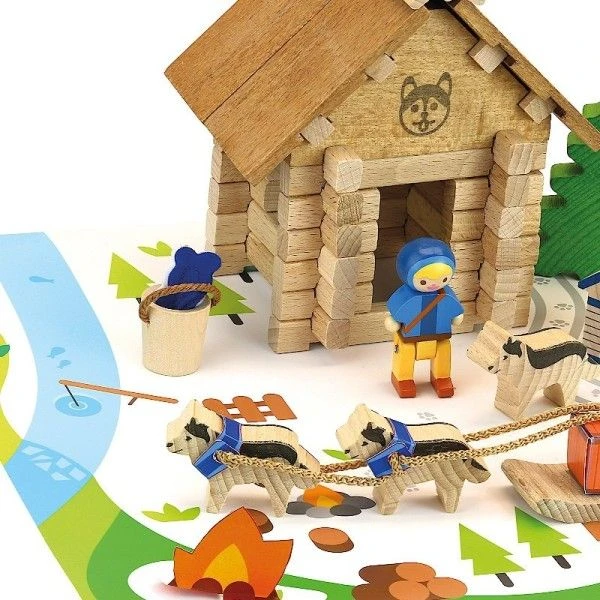 Pour les amoureux de nature, des animaux, de protection de l’environnement et de travail dans la forêt, éveil émotionnel et découverte avec ce joli Kit de jeu en bois du jura, la maison du musher… Jouet en bois Jeujura® Kit la Maison du Musher 50 pièces. Un adorable kit de construction en madrier pour réaliser la maison du Musher au fond des bois et la vie dans le nord avec ses chiens et son traîneau. De nombreux accessoires dont un beau musher bien emmitouflé, 3 chiens, 1 traîneau, une niche, 1 sapin, 1 seau de poisson fraîchement pêchés dans la rivière, des éléments décoration (feux, cargaison…) et un tapis de jeu. Un jouet simple, beau et pédagogique pour s’amuser au petit charpentier musher, aventurier du grand nord tout en se sensibilisant à la rigueur de la construction en bois. Un jouet intemporel fabriqué pour durer, qui rappellera certainement quelques souvenirs aux parents qui ont eu la chance de jouer avec étant petit.