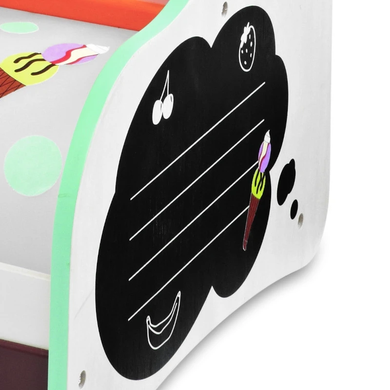 Pour les petits Marchands et petites marchandes à partir de 36 mois, éveil émotionnel et imagination avec cette jolie Petite Boutique de Glace et Crèmes glacées vintage Wonderworld. Pour jouer le rôle du petit gourmand ou du vendeur de glace, raconter les potins du quartier, préparer de jolies glaces ou crèmes glacées et se régaler,… ranger, organiser son petit commerce et imaginer des scènes de commerces avec son papa, sa maman ou ses amis(es). Avec son pare soleil rayé, sa devanture vintage, ses accessoires de confection de glace et son tableau noir pour afficher les spécialités du jour, ce jouet de marchand de glace est parfait pour rafraichir les après d’été.