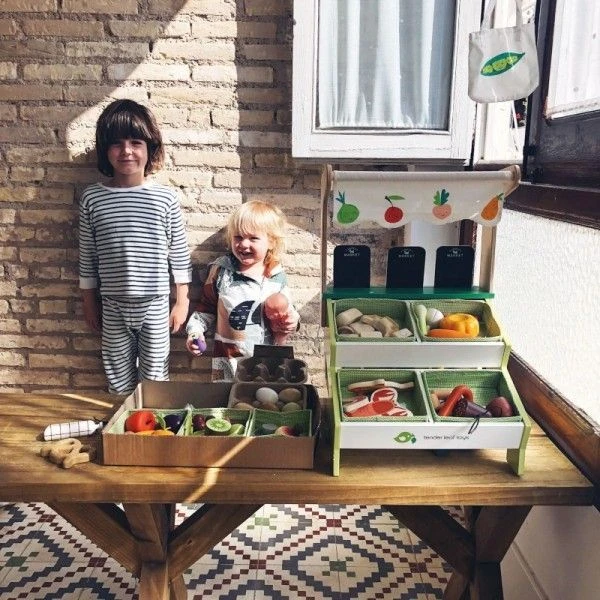 Les Jouets Marchande en bois Étal de marché Tender Leaf Toys®, sont réalisés avec soin à partir de bois d’hévéa sain et naturel, issus de forêts cultivées durablement. La fabrication des jouets et des emballages repose sur des valeurs sociales et environnementales très responsables, respectant au delà des normes, les labels de qualité et de sécurité internationaux et européens. Un jouet donc particulièrement écologique ‘dessiné avec soin par la société Tender Leaf toys®. L’entreprise californienne s’appuie sur la très réputée fabrique ‘Mentari International’ spécialisée dans les jouets en bois depuis plus de 30 ans maintenant. La société Tender Leaf toys® est profondément soucieuse de la protection de la planète et de ses ressources. Aussi les jouets en bois Tender Leaf toys® sont intégralement composé du bois d’hévéa légal indonésien qui est un sous-produit de l’industrie du caoutchouc. Le bois d’hévéa est un bois économique et respectueux de l’environnement et le gouvernement indonésien s’est engagé à replanter les plantations d’hévéa dans le cadre de son économie en croissance. La production de latex devient non rentable une fois que les arbres ont atteint le grand âge d’environ 25 ans et étaient traditionnellement abattus et brûlés, mais sous une incitation légale indonésienne en bois, nous prenons ce bois et le transformons en beaux jouets. Pour chaque arbre abattu, un autre est planté à sa place, assurant ainsi un approvisionnement continu.