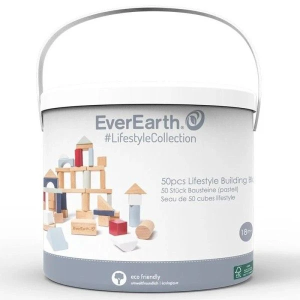 Jouets en bois 50 Blocs de construction Lifestyle EverEarth®- Pour les petits constructeurs à partir de 18 mois,… découvertes physiques et émotionnelles, en douceur et en couleurs avec ce bel ensemble de cubes aux formes variées et couleurs pastelles…