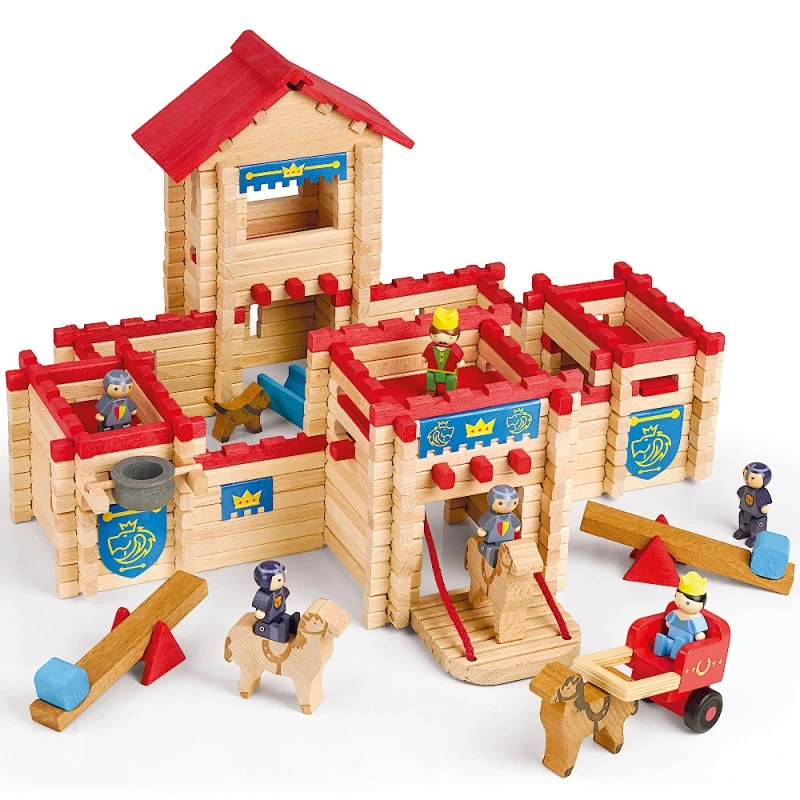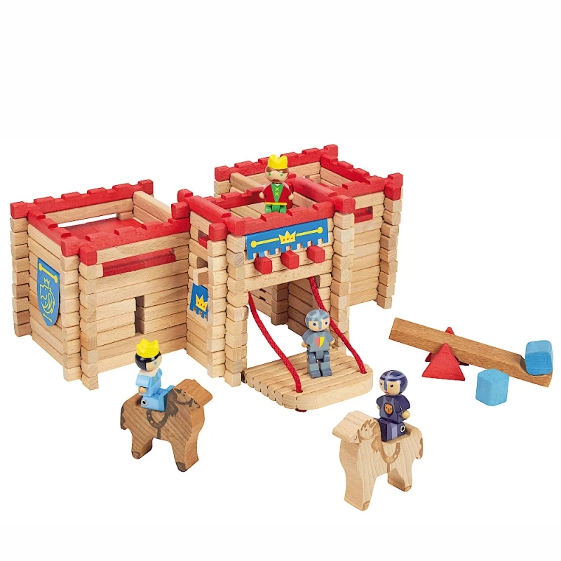 ✎ Les Jouets en bois Château Fort en rondins 300 pièces détails