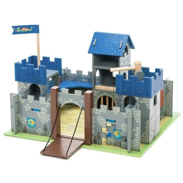 Pour les petits à partir de 36 mois, éveil émotionnel et imagination avec cette magnifique Jouets en bois Maison de poupées Château Excalibur Le Toy Van®. Un château fort avec trois belles tours, un pont-levis et un monte charge à poulie, un mur de séparation et une cellule de prisonnier… un jouet qui favorise le développement des compétences sociales et linguistiques. Ce château fort est parfaitement dimensionné pour les personnages Budkins Le Toy Van et toute autre figurine mesurant environ 10 cm…. Que de belles histoiresde chévaliers, donjons et dragons à s’inventer….