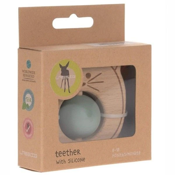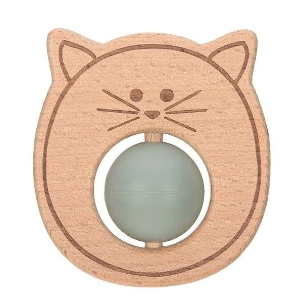✎ Les Hochet de dentition 2 en 1 Bois et silicone Little Chums Chat Lässig® détails