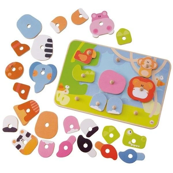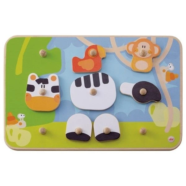 Pour les petits dés 24 mois, Eveil physique et intellectuel en partant à la découverte des fabuleux animaux de la Savane Africaine avec ce joli et astucieux Puzzle à boutons Créatif Animaux de la Savane 30 pièces Sevi 1831. 30 pièces à assembler sur un fond de paysage, et reconstituer les pièces des hommes et animaux d’Afrique sans se tromper… Lion, Eléphant, Zèbre, Hippopotame, crocodile, Singe, Perroquet et imaginer de tout mélanger au grés de sa créativité. Un joli jeu pour développer l’imagination, la dextérité et pour acquérir de bien belle connaissances sur les animaux et Habitants de ce beau continent.