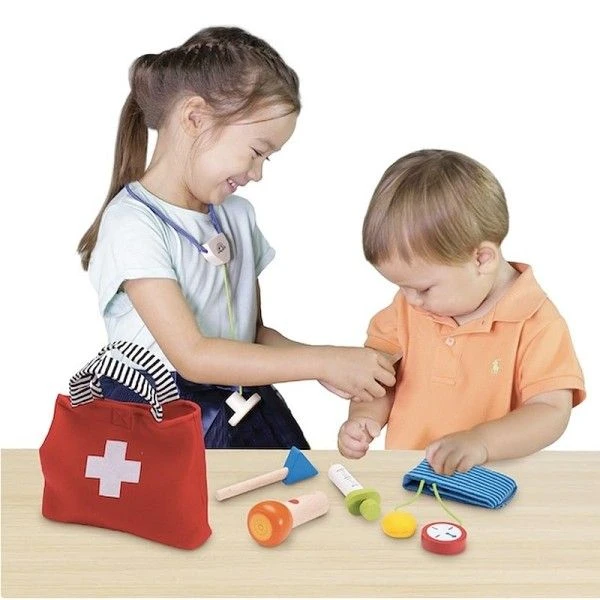 Pour les petits docteurs à partir de 36 mois, éveil émotionnel et imitation avec cet très joli et complet Set Panoplie du Docteur WonderWorld®. 6 accessoires (un stéthoscope, un tensiomètre, une lampe de poche, un thermomètre, une seringue et un marteau réflexe) et un sac d’urgence, pour porter secours, et donner un premier diagnostic sur la santé des patients. Les jouets d’imitation permettent aux petits de s’approprier leur univers social, de jouet des rôles en construisant leur personnalité.