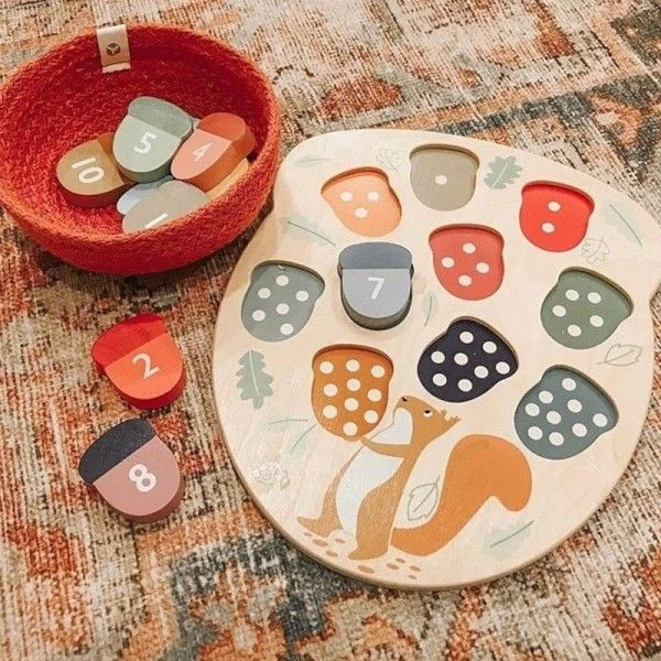 Tender Leaf Toys Jouet En Bois Puzzle ApprentissageChiffres ‘Combien De Glands?’ – Jouets En Bois
