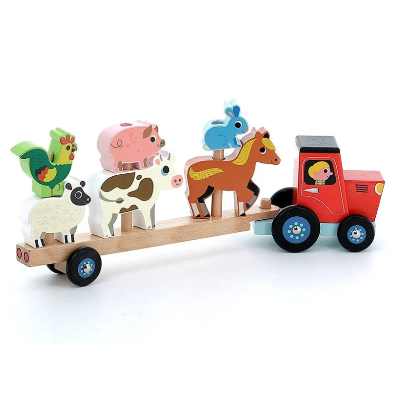 ✎ Les Jouets Tracteur Remorque Animaux de la Ferme Empil’animo Ingela P.Arrhenius Vilac® détails
